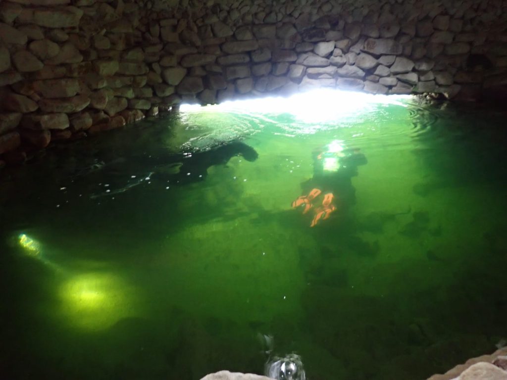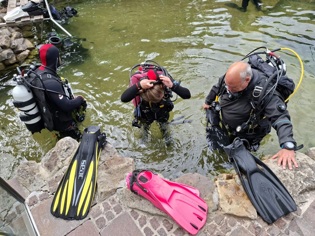 Zum Glück ist aber um die Jahreszeit das Wasser nicht kalt und es ist auch angenehm sauber. Wer wissen will, wie zahme Störe aussehen und was es sonst noch für Fische im Teich gibt muss einfach mal mitfahren.